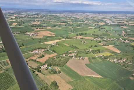 On the scheduled day you will be welcomed at the "F. Cappa" airport in Casale Monferrato, by the managers of the Italian Flight Academy. After a short tour of the school and the various activities, you will be accompanied to the aircraft where the pilot will be waiting for you for a briefing on the flight and the aircraft. In the flight over Monferrato you will be able to see castles, villages and historical places of particular interest. The flight will last approximately 30 minutes.
